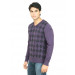 Purple V-neck sweater made of 100% cotton, has a ribbed neck with diagonal patterning in front, long sleeves with ribbed cuffs and a ribbed hem