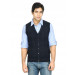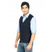Navy blue sleeveless sweater vest made of 100% cotton, has a buttoned placket, diamond textures on the front and a ribbed hem