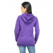 Purple hooded sweatshirt made of 80% cotton and 20% polyester, has a hood with drawstrings and velvet inner lining, full sleeves, ribbed cuffs and hem, brand name across the chest in metallic embellishments, and pockets on the waist