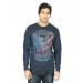 Navy blue sweatshirt made of 100% cotton, has a round ribbed neck, long sleeves with ribbed cuffs, ribbed hem, brand badge in graphic print on the front