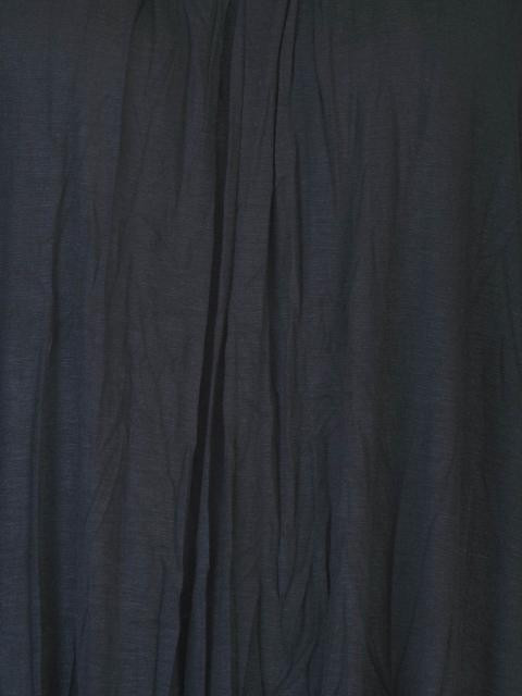Black sleeveless pleated blouson tunic top made of 100% rayon, has contoured pleats that are created by attaching a contoured panel to the neckline, and an elasticated hem
