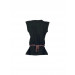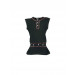 Black sleeveless top made of 100% cotton, has a round neck, chest placket with crystal buttons, drop waist with a belt and crystal embellishments and piping along the neck, chest placket and drop waist