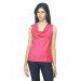 Pink sleeveless top made of tussar silk/cotton blended fabric, has a cowl neck, sequins along the arms and at the bust and a slightly curved hem