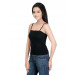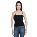 Black spaghetti strap top, has adjustable straps and a straight neckline