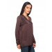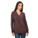 Brown Top made of blended fabric, has a V-neck with a notched collar extending to the chest and long sleeves with buttoned cuffs