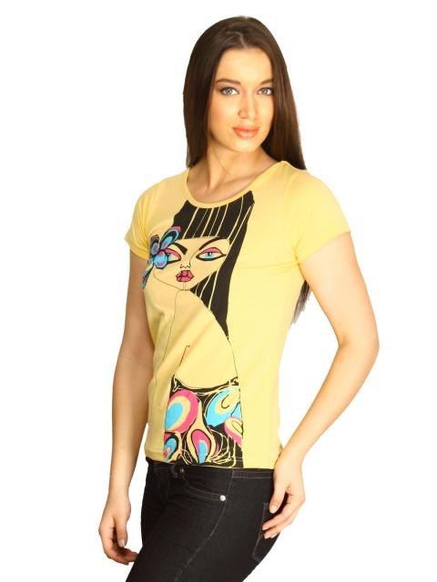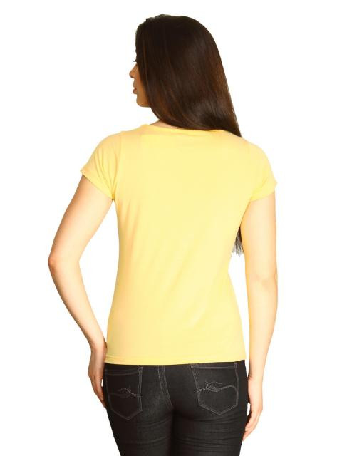 Yellow round neck t-shirt made of 100% cotton, with short sleeves and graphic print on the front