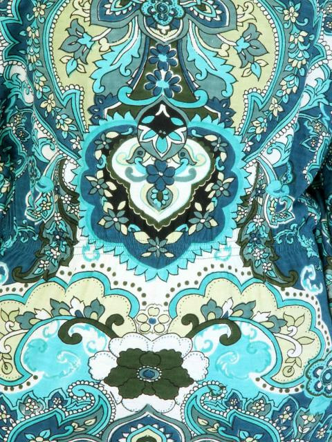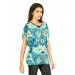 Blue printed kaftan top made of 100% viscose, has raglan sleeves and a draw cord on the waist