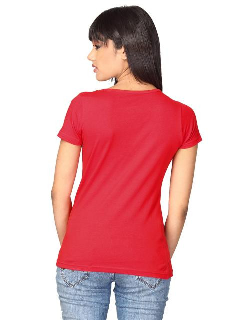 Red round neck t-shirt made of 100% cotton, with graphic print on the front