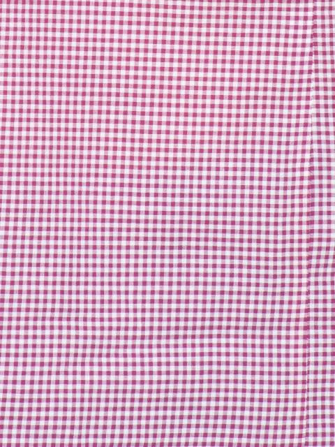 Purple checked round neck top made of 100% cotton, has short puffed sleeves and a concealed zipper on the side