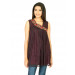 Purple sleeveless pleated tunic top made of 100% polyester, that has an asymmetrical neckline with embroidered panel