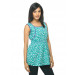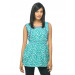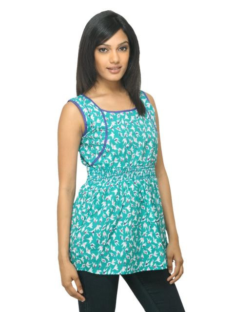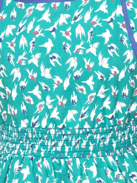 Green printed top made of woven 100% cotton, has a round-neck, is sleeveless, has contrast panelling around the neckline and sleeves and is elasticated at the waist