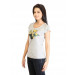 Grey melange T-shirt made of 100% cotton, has a round neck, short sleeves and grunge look graphic on the front