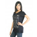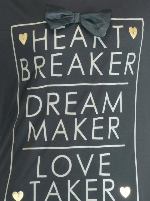 Black round neck top made of 100% cotton, has graphic print and a bow detail on the front