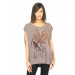 Brown sleeveless top made of 65% polyester and 35% viscose with graphic print