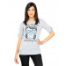 Grey round neck printed top made of 100% cotton with long sleeves and a mid-arm button