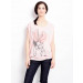 Pink sleeveless round neck top made of 65% polyester and 35% polyester with graphic print on the top