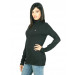 Black polo neck t-shirt made of 100% cotton, has long sleeves and stone embellishment branding on left chest