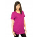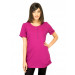 Magenta round neck top made of 100% cotton, has short sleeves with fold-over hem, half buttoned placket, stitch detailing on the chest and ruched hem