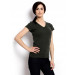 Olive green round neck top made of 100% cotton, has short sleeves and crystal embellished branding on the chest