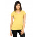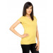 Yellow V-neck top made of 100% cotton, has short sleeves and crystal embellishment branding on left chest