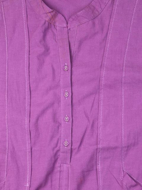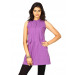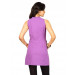 Purple sleeveless top with a Chinese collar, made of 100% cotton, has a buttoned chest placket with short pleats and a mock jacket