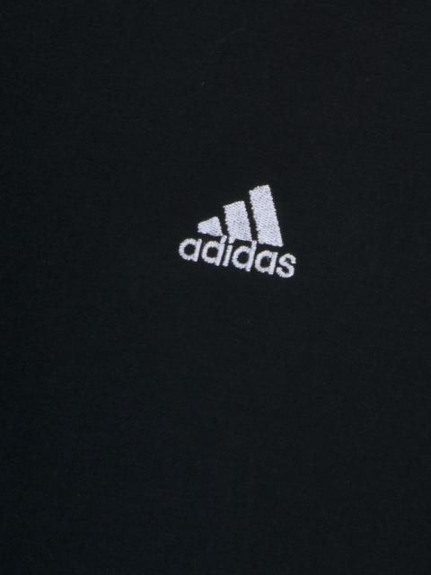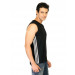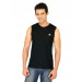 Black sleeveless vest made of 60% cotton and 40% polyester, has a round neckline, iconic three stipes on the sides in white fabric strips and embroidered brand name on the upper left chest