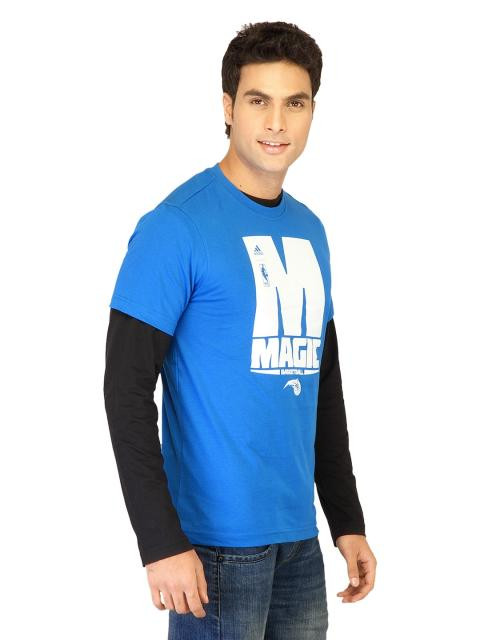 Look cool on and off the courts in this T-shirt duo from adidas. The Magic Johnson inspired logo on the front and the NBA tabs infuses this tee with a strong dose of Basketball magic, while the cotton fabric keeps you feeling fresh and comfortable all day long. Team it with jeans and sneakers for casual wear.