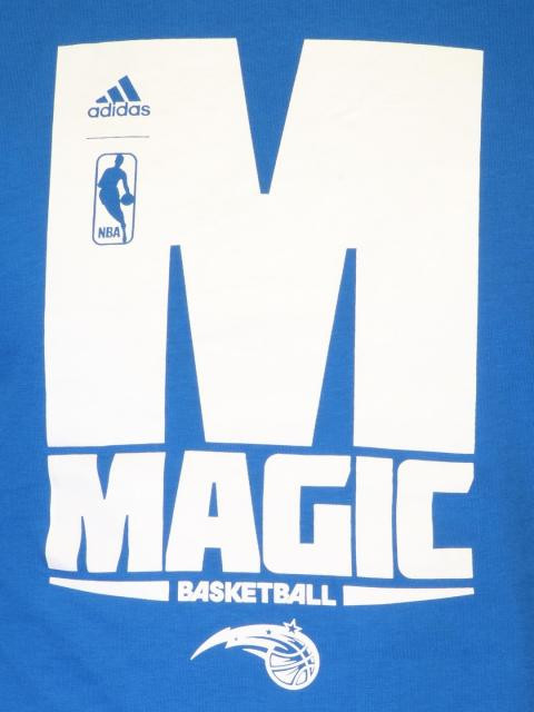 Black long sleeves T-shirt made of 100% cotton, has a ribbed round neckline with tape detailing on the inseam, long sleeves with the word "Magic" on the left sleeve and appliqued NBA tab on the upper left chest