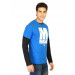 Dark blue round neck T-shirt made of 100% cotton, has a ribbed neckline with tape detailing on the inseam, short sleeves and NBA-inspired graphic print on the chest