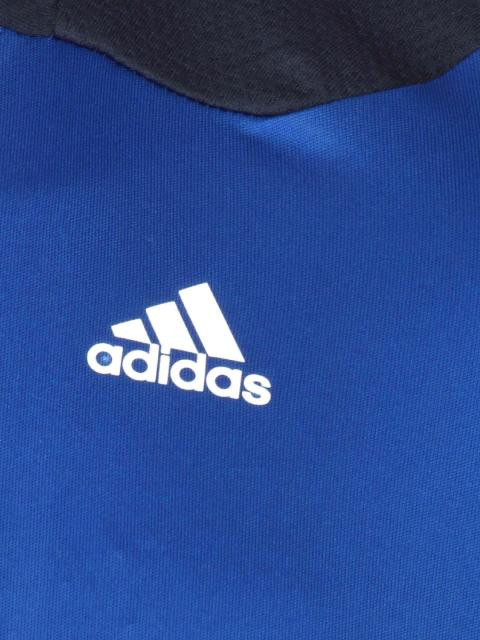 Navy blue jersey made of 100% polyester, engineered with ClimaCool technology, has a round neck, short sleeves with adidas patented 3-Stripes in grey on the shoulders and sleeves, contoured sides and brand name in rubber print on the left chest