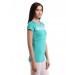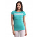 Blue round neck T-shirt, has raglan short sleeves, a decorative seam on the front. a mesh panel on the back with a panel covering and Adidas three patented stripes across the chest