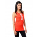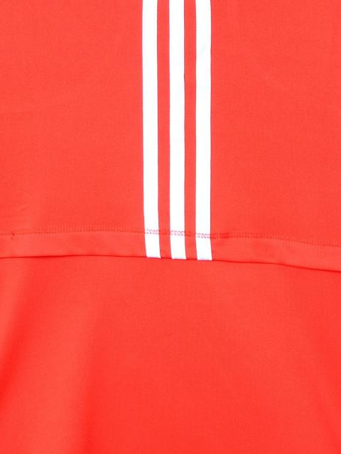 Red racer back t-shirt made of climacool cotton, has a round neck, Adidas patented 3-stripes on the front, branding in rubber print on the left chest and a mesh panel on the back with a panel covering