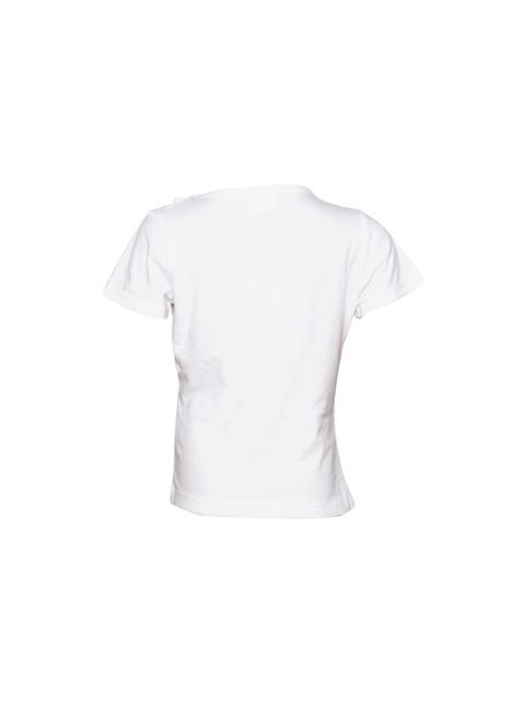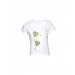 White round neck t-shirt made of 100% cotton, with ruffled bib and  graphic on the front