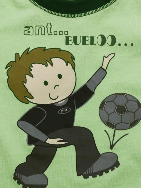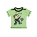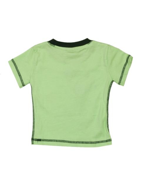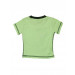 Green T-shirt has short sleeves, round neck and graphic print on the front