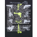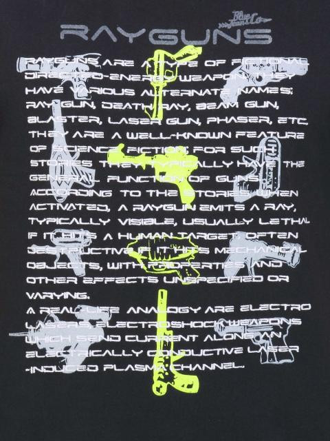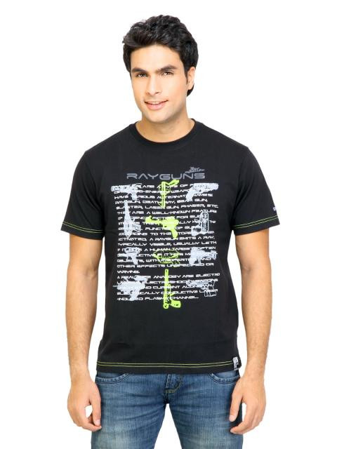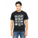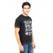 Black round neck T-shirt made of 100% cotton, has short sleeves, flock and rubber print with embroidery on the chest, and brand tab on the left sleeve and hem