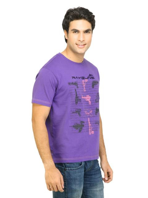 Bring out the child in you with the fun and action that this trendy Raygun round neck T-shirt from arrow exudes. Crafted from soft cotton fabric and designed for style, this tee offers exemplary comfort and is sure to become a wardrobe favourite. Team it with jeans and sports shoes.