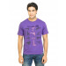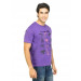 Purple round neck T-shirt made of 100% cotton, has short sleeves, flock and rubber print with embroidery on the chest, and brand tag on the left sleeve and hem