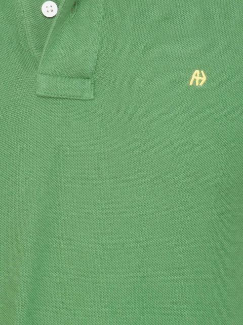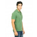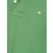 Green polo T-shirt made of 100% compact cotton, has a ribbed collar with a buttoned chest placket, short sleeves with ribbed hems, embroidered brand collection on the left chest and a vented hem with a brand tag