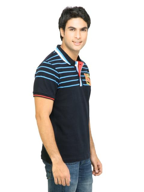 Don that sporty look in ease with this striped polo neck T-shirt from the arrow sport collection. Crafted from pure cotton and designed for yachting fans, this tee offers exemplary comfort and is sure to become a wardrobe favourite. Team it with jeans and sports shoes.