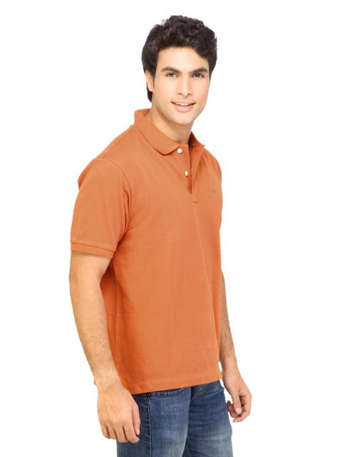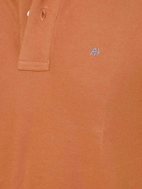 Orange polo T-shirt made of 100% compact cotton, has a ribbed collar with a buttoned chest placket, short sleeves with ribbed hems, embroidered brand collection on the left chest and has a vented hem with brand tag