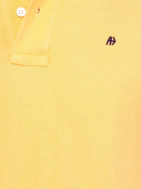 Yellow polo T-shirt made of 100% compact cotton, has a ribbed collar with a buttoned chest placket, short sleeves with ribbed hems, embroidered brand collection on the left chest and a vented hem with brand tag