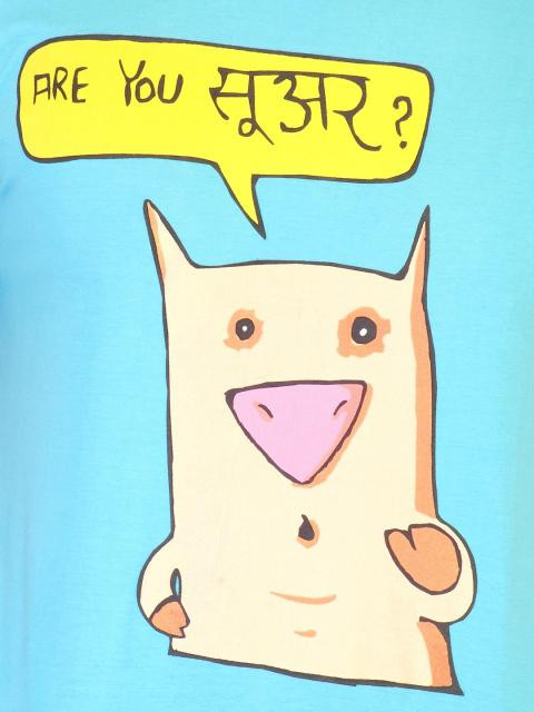 Look what superficial accent can sound like - Are your 'soor'! Well, we are not 'sure'! Pair this witty chimp T-shirt with denims and canvas shoes for a great casual look, and revel in the comfort of the cotton fabric all day long.