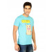Light blue round neck T-shirt made of 100% organic cotton, has fabric tape detailing on the inseam of the neckline, short sleeves, and brand logo below the nape of the neck