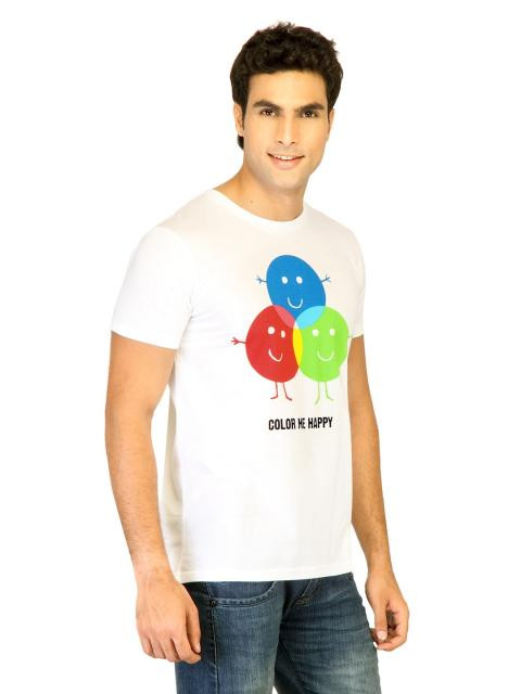 Sometimes, randomness is a great indulgence, because it helps you connect with the child in you. Colour your day happy in this T-shirt and pair it with denims and canvas shoes for a great casual look.