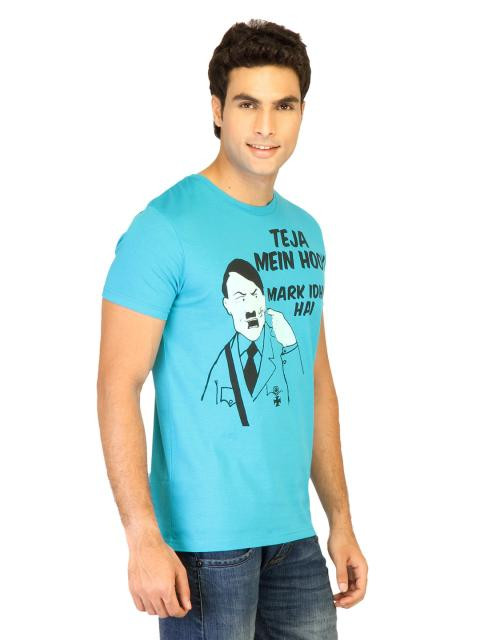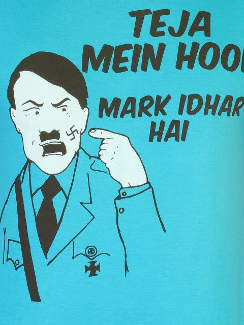 The legendary dialogue from Andaz Apna Apna gets an interesting Hitler-ish twist. Hitler is transformed into the "phoren" Teja for the funky thinking  Bollywood fans. Pair this T-shirt with denims and canvas shoes, and revel in the comfort of the cotton fabric and a great casual look.