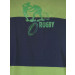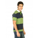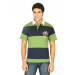 Green and blue striped polo T-shirt made of 100% cotton, has short sleeves, contrast collar, buttoned chest placket, embroidered club logo on left chest, club print on the left sleeve and a vented hem