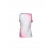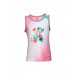 White round neck sleeveless t-shirt with pink colour gradation made of 100% cotton, aqua blue and pink piping around neckline and armholes, aqua blue ribbon bow next to collar and Minnie and Daisy graphic on the front