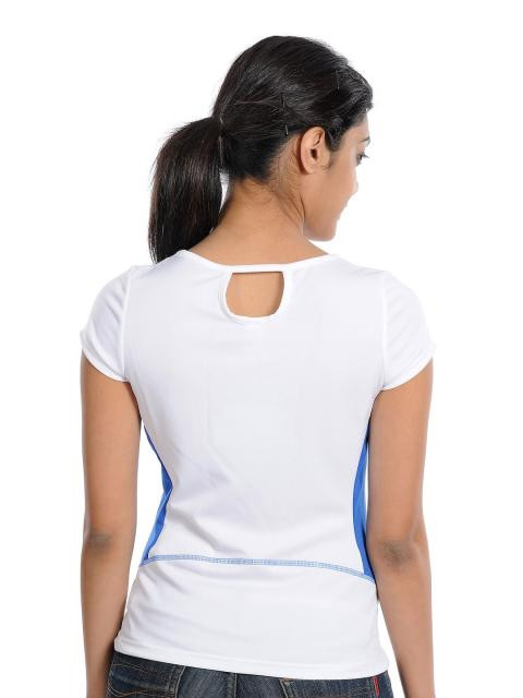 This white polyester t-shirt has a cut and sew panel with flat lock stitching. It's a high drying quality material. Couple this tee with comfortable bottoms and you are all set to go the fitness way.