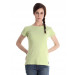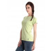 Lime green top, has a round ribbed neck, short sleeves and embroidered branding above the left hem