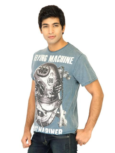 Up your trendy look with ease by slipping into this blue washed look T-shirt from flying machine. Created using soft cotton, this T-shirt offers exemplary comfort all day, while the distressed look graphic print on the front gives it an antique edge. Team it with jeans or cargos and slip-ons.